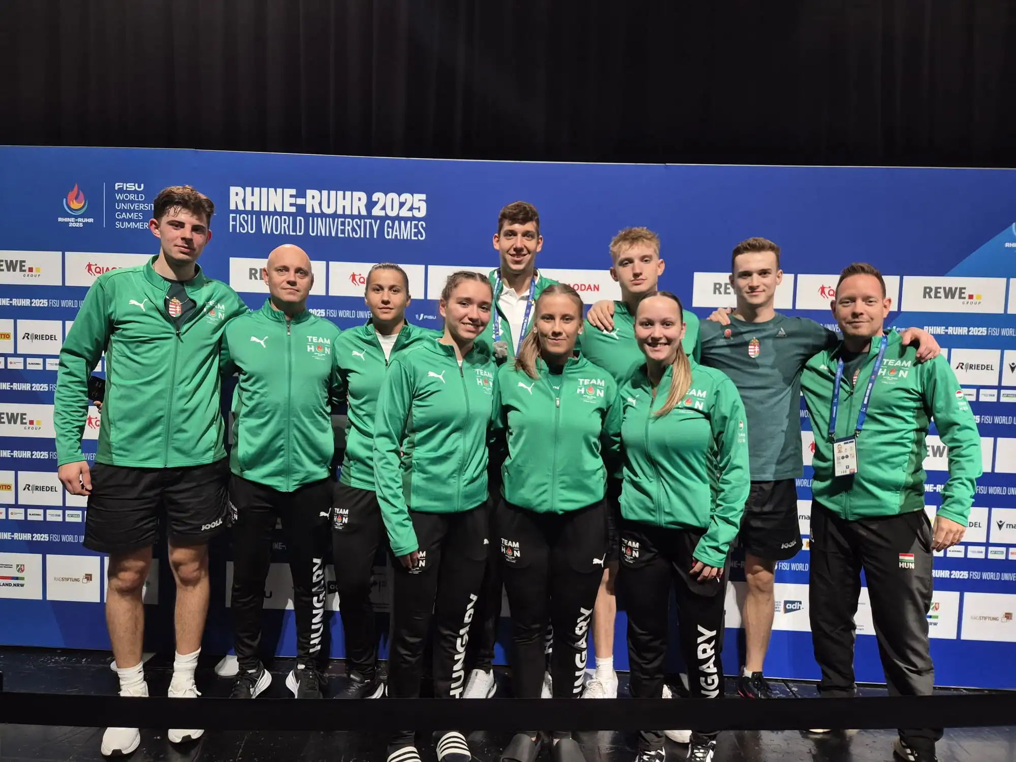 Először csapatban mérték össze tudásukat az egyetemisták. A lányok (Dari Helga, Fejős Anna, Laskai Írisz, Hudák Dorina) Németországgal, Franciaországgal és északi szomszédunkkal, Szlovákiával kerültek egy csoportba. Sajnos mérkőzést nem sikerült nyerniük, így a csoportban befejezték a küzdelmeket. A fiúk (Huzsvár Erik, Molnár Dávid, Ócsai Máté, Hőgye Dániel) szintén összecsaptak a németekkel és mellettük Mongólia csapatával is megmérkőztek. A németektől még vereséget szenvedtek, azonban Mongólia legyőzésével továbbjutottak az egyenes kieséses szakaszba, ahol a nyolcaddöntőben Japán várt rájuk. A mérkőzés végén érvényesült a papírforma.